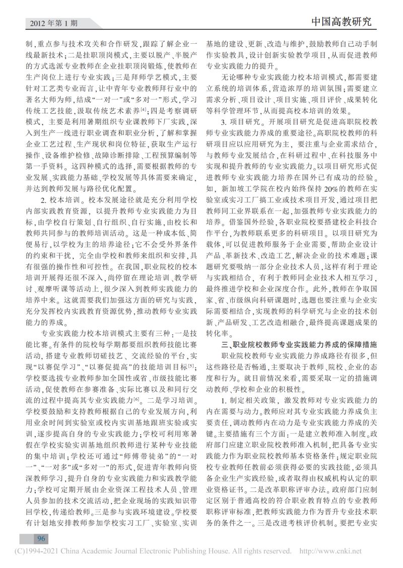 职业院校教师专业实践能力的缺失与养成