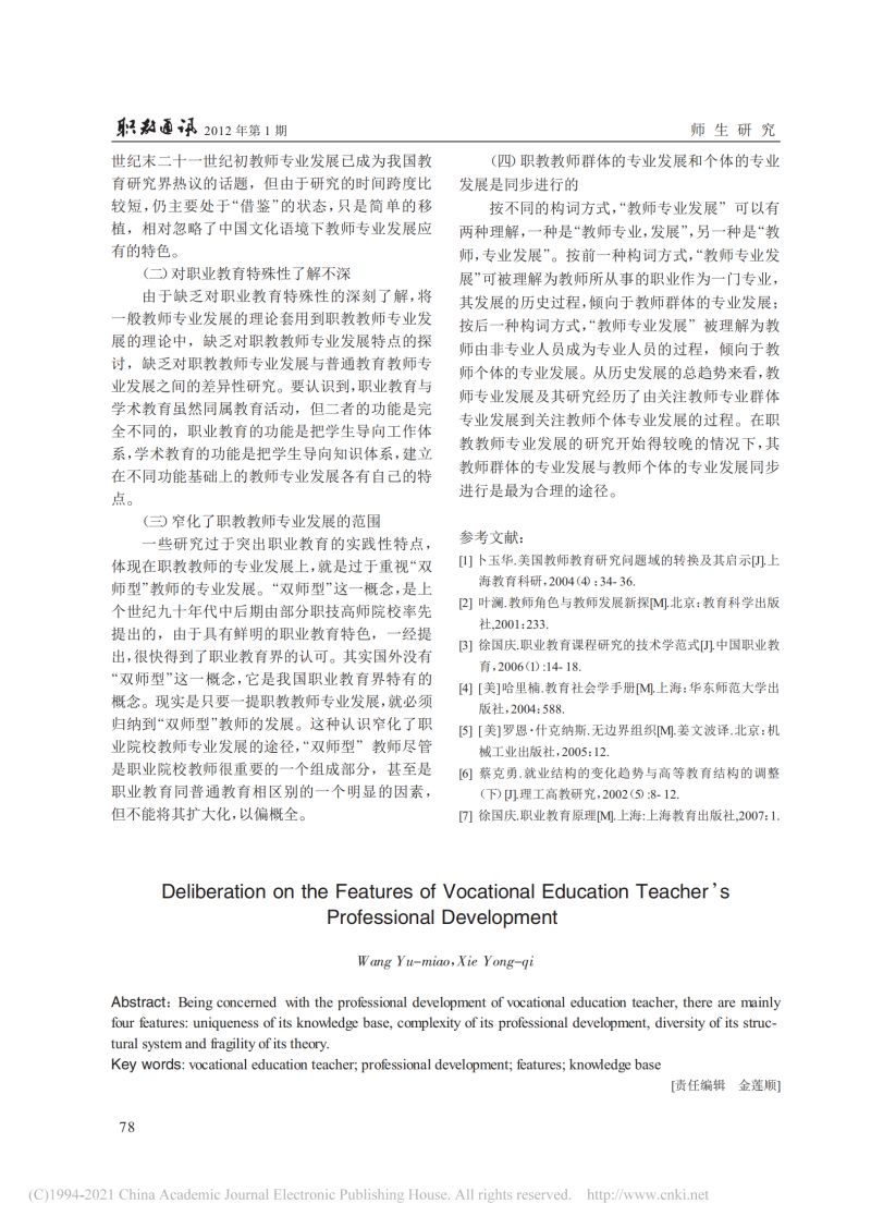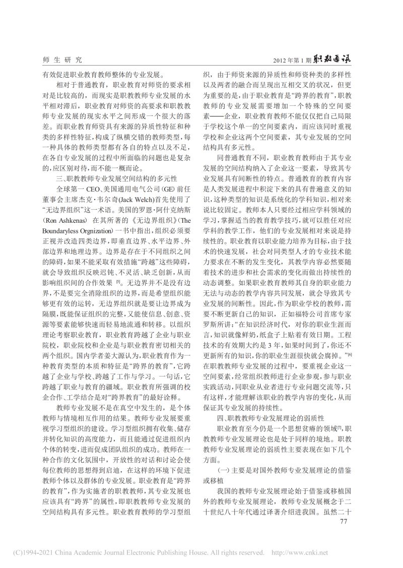 关于职教教师专业发展特点的思考