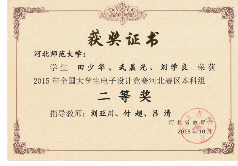 2015年全国大a片无码电子设计竞赛河北二等奖